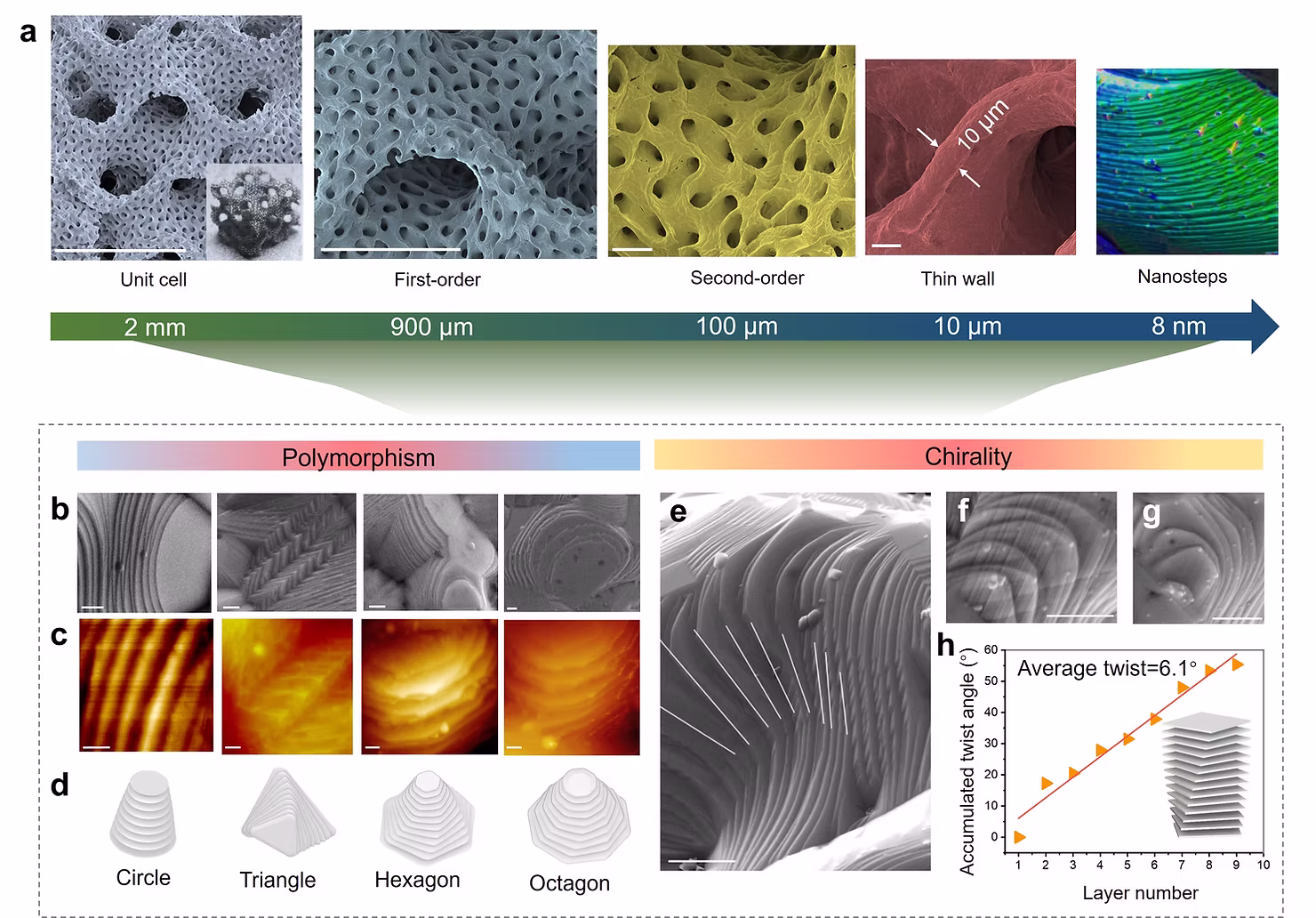 Professor Yang Lu and his collaborators developed a dislocation-mediated 3D printing strategy to simultaneously synthesize macroscale architectures with nanoscale chiral surface structures, eliminating weak heterointerfaces that plague conventional catalysts. As a result, the FeCoNi dual-scale shell-lattice metamaterials demonstrated superior catalytic activity (Faraday efficiency of 95.4%, an NH3 yield rate of 20.58 mg h−1 cm−2) and long-term stability (500 hours) for the electrochemical nitrate reduction reaction. This work opens a new perspective for advancing 3D printing technology in catalysis applications. The research findings were published by Nature Communications on 7 Aug, 2025.