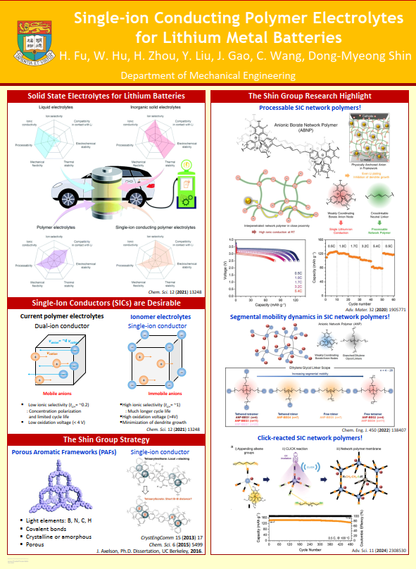 Single-ion Conducting Polymer Electrolytesfor Lithium Metal Batteries (from Professor Shin, D.M.) Date 2025-11-04 Share: Marian Previous post Moisture Energy Harvestingfor Distributed Electronics (from Professor Shin, D.M.) 2025-11-04 Next post Triboelectric Nanogeneratorsfor Mechanical Energy harvesting (from Professor Shin, D.M.) 2025-11-04 You may also like MSc Orientation Session for the 2024-25 intakes 2024-09-19 Cold welding of silica nanoparticles for various glass 3D architectures and nano-devices 2024-10-14 Engineering ultrafast exciton dynamics to boost organic photovoltaic performance 2024-10-30